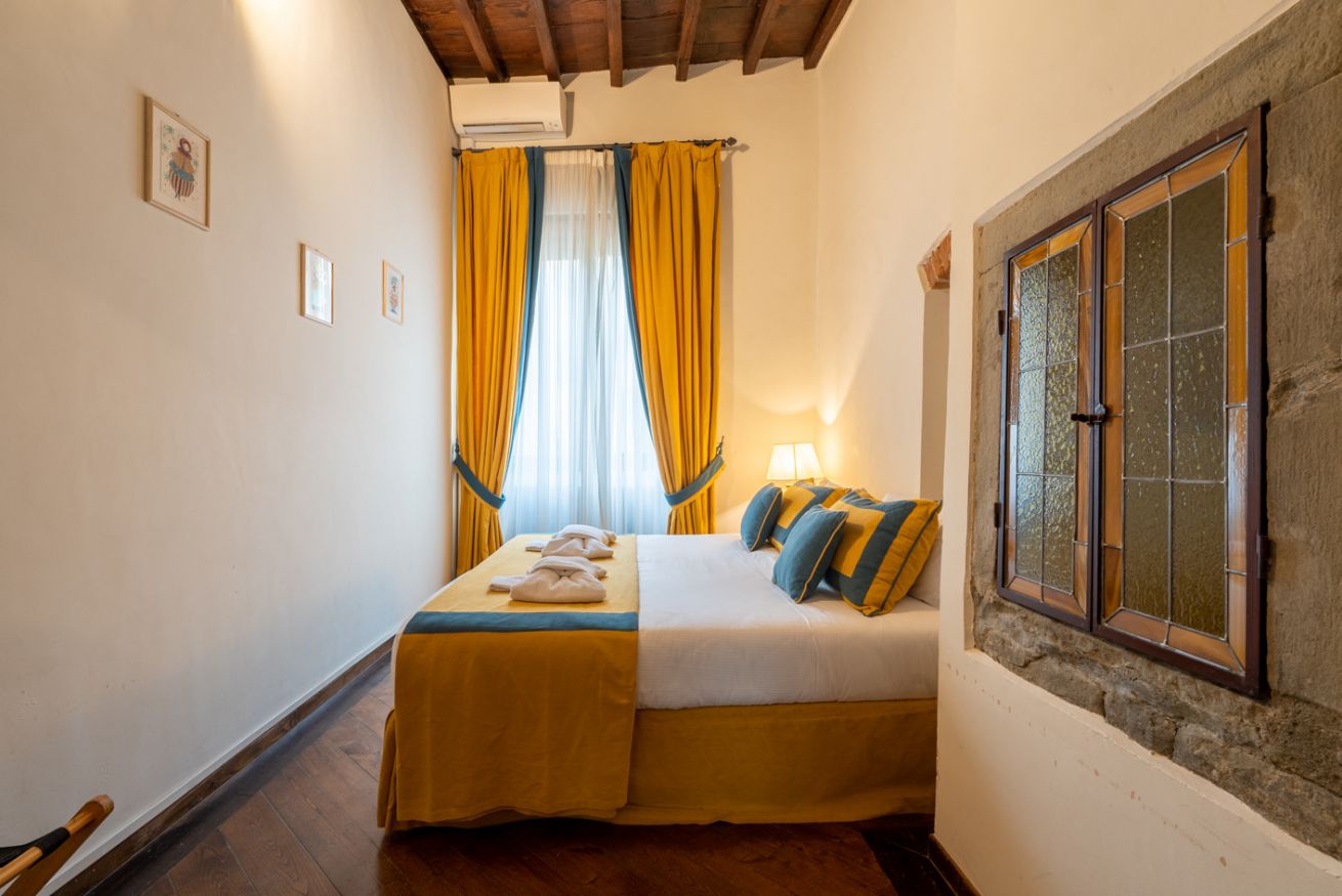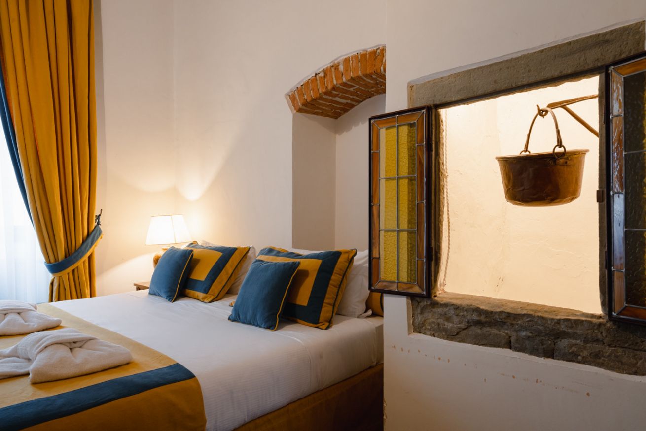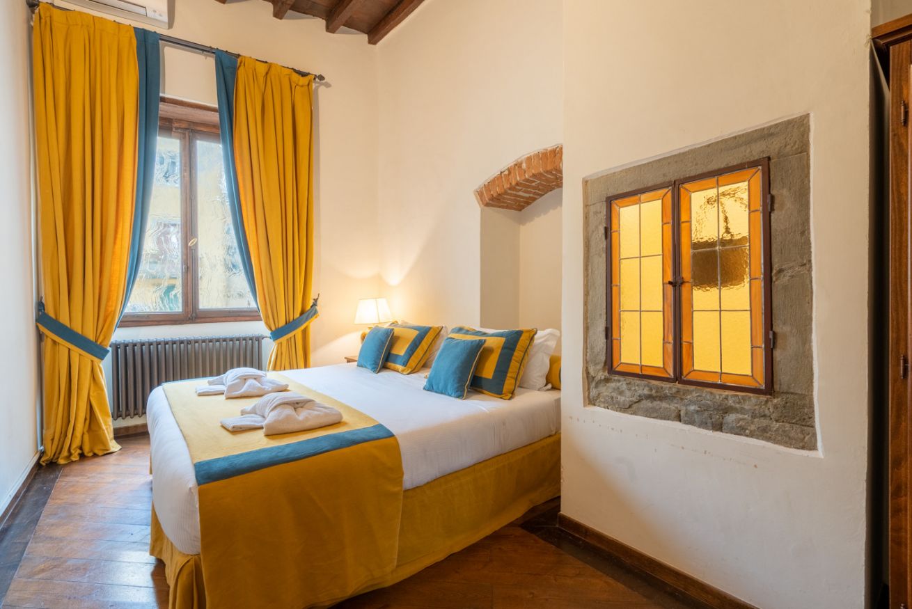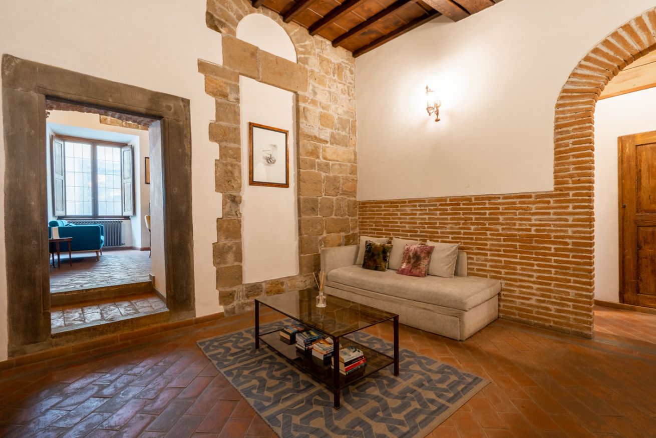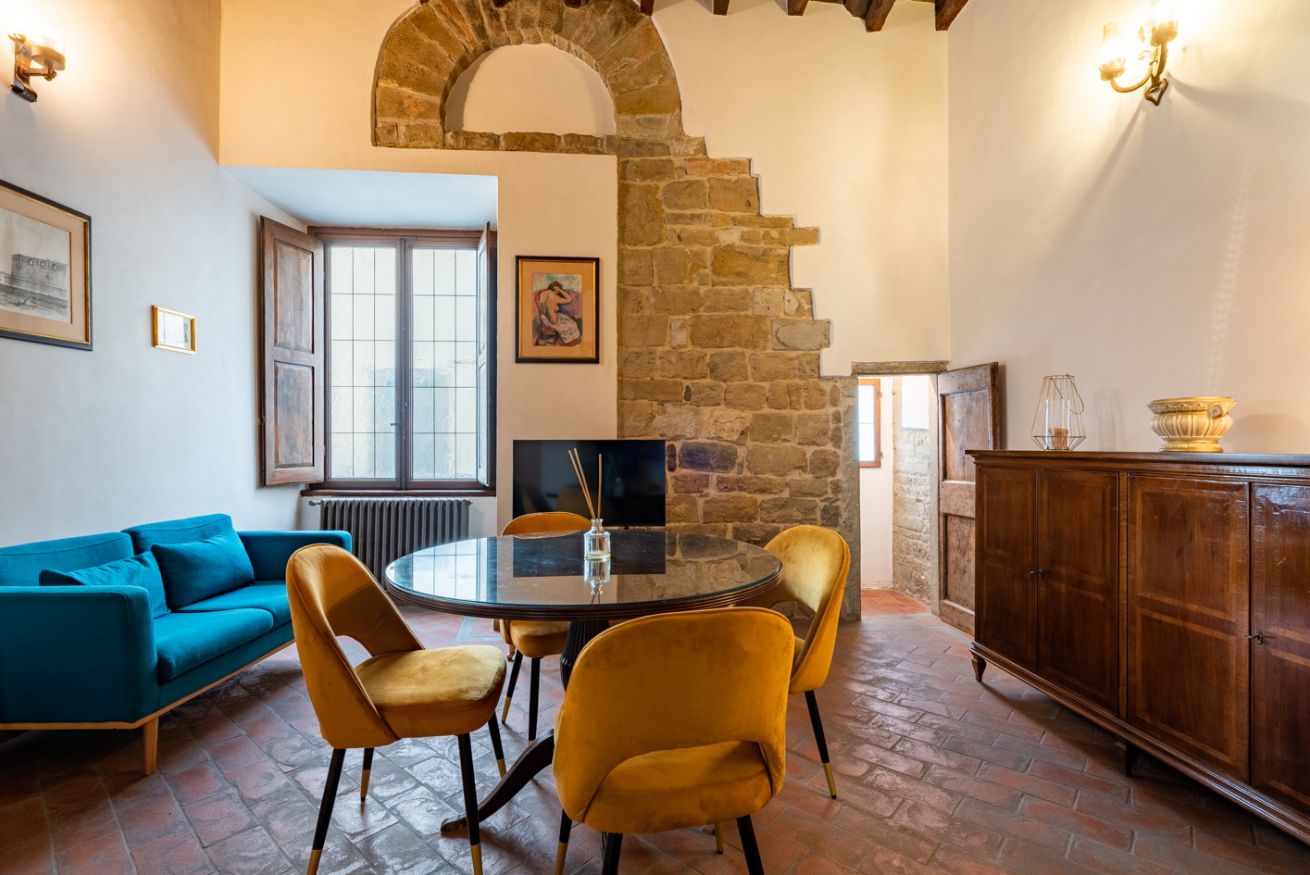 Qui, tra mura in pietra originali e dettagli architettonici che raccontano oltre sette secoli di storia, un tempo sorgevano le case torri della potente famiglia Donati, protagonisti della Firenze trecentesca.