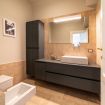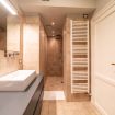 Lussuoso e luminoso appartamento, al primo piano con ascensore, arredato con stile moderno e ricercato composto da: sala, cucina accessoriata, 2 camere matrimoniali e un bagno con due docce molto spaziose.