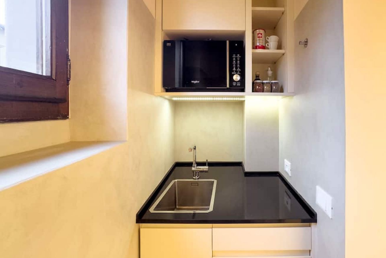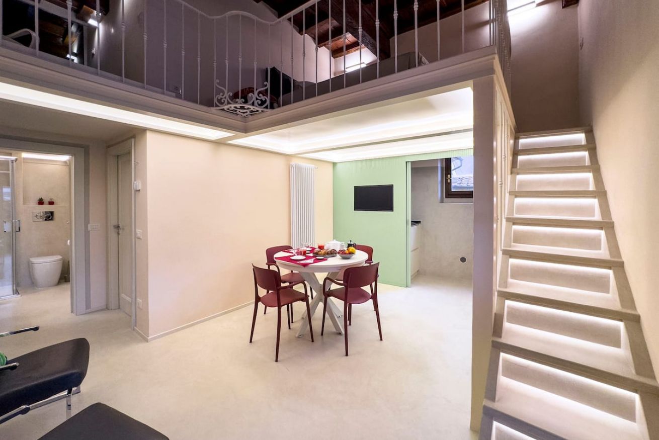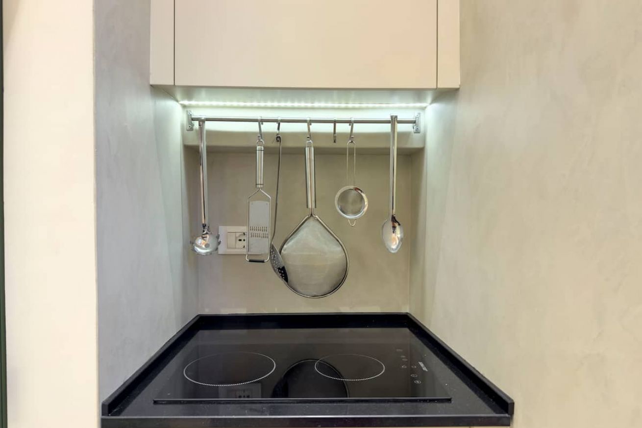 L'appartamento è stato recentemente restaurato in chiave moderna, con materiali ecologici.