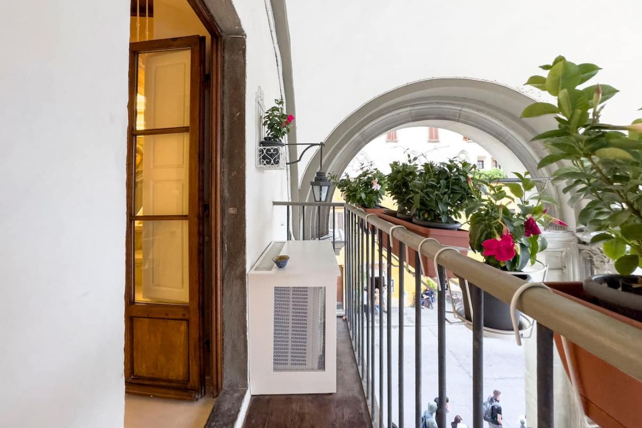 L'appartamento è collocato nella Loggia dei Servi di Maria, palazzo del Cinquecento, progettato da Baccio d'Agnolo e Antonio da Sangallo il Vecchio. Il balcone si affaccia direttamente sulla piazza Santissima Annunziata, dalla quale si intravede il Duomo di Firenze, che dista pochi metri dalla piazza.